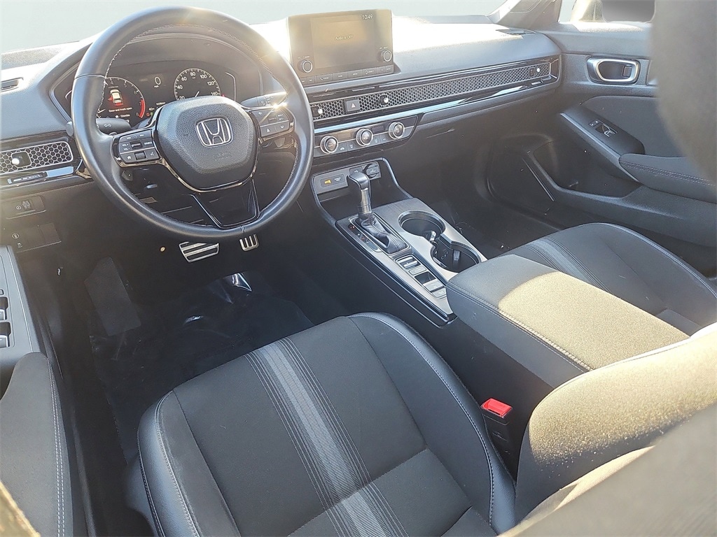 Explore the sophistication of the 2023 Honda Civic Sport, now HondaTrue Certified for its exceptional condition and low mileage. This sedan features a sleek black exterior that perfectly complements its stylish black interior, creating a bold and modern look on the road.