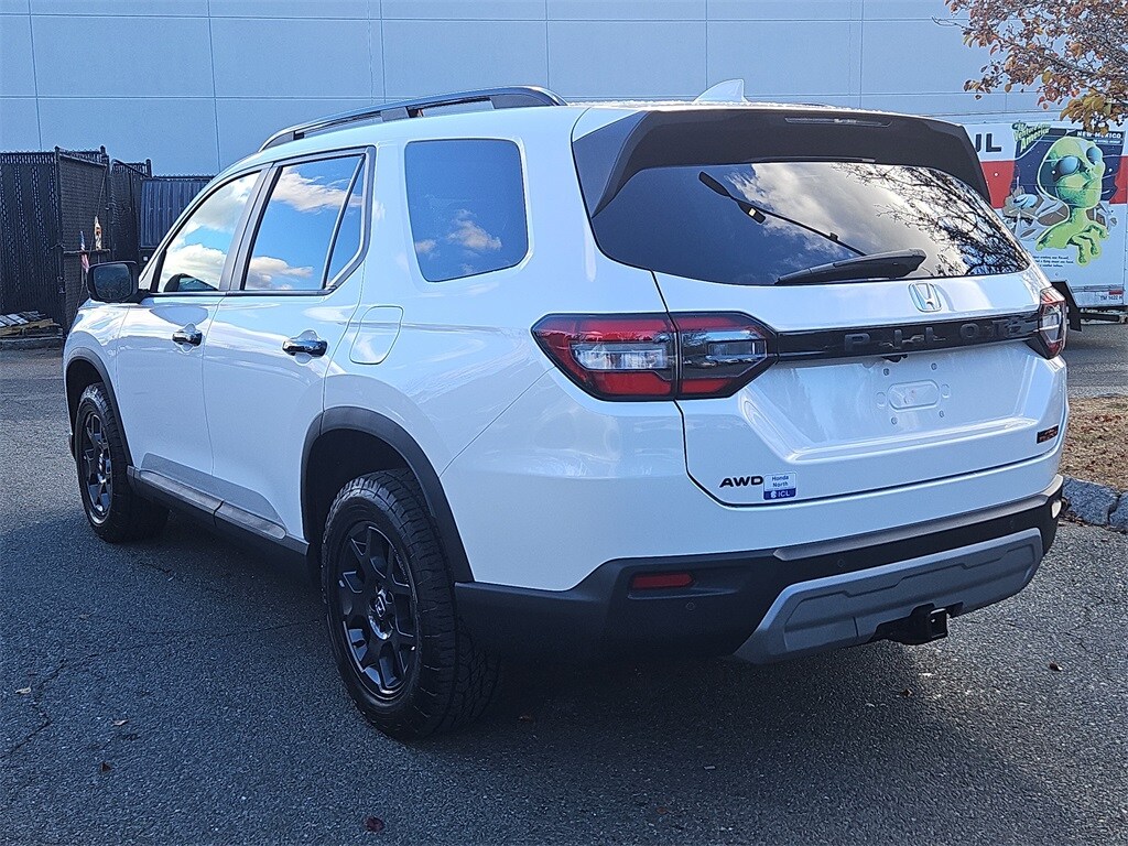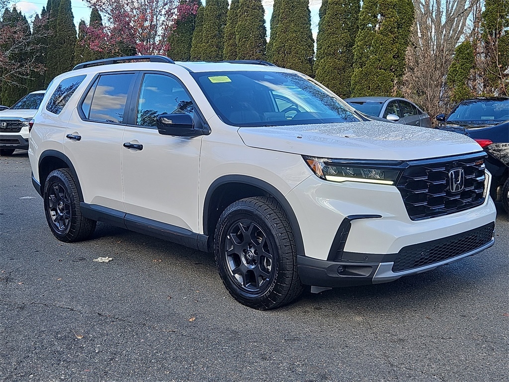 Adventure-Ready and Packed with Style, this 2025 Honda Pilot TrailSport is built for New England families who want comfort on the road and capability in all four seasons. With just 24,676 miles, this one-owner SUV features rugged TrailSport tuning, off-road suspension, all-terrain capability, exclusive styling, leather-appointed seating, heated front seats, a panoramic moonroof, navigation, wireless Apple CarPlay/Android Auto, and Honda Sensing safety technologies. Its roomy 3-row interior, smooth V6 power, and confident AWD make it perfect for everything from snowy commutes to weekend escapes. With an estimated in-service date of 08/30/2024, this vehicle qualifies as HondaTrue Certified, giving you exceptional protection and value.