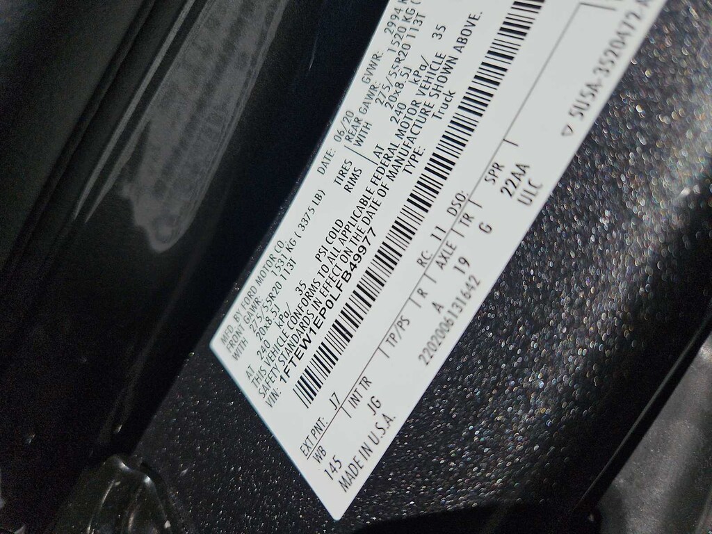 EQUIPMENT GROUP 101A MID XL Power Equipment Group, Power Door Locks, flip key and integrated key transmitter keyless-entry (includes Autolock), MyKey, Power Glass Sideview Mirrors w/Black Skull Caps, manual-folding, Power Front & Rear Windows, Power Tailgate Lock, Illuminated Entry, Perimeter Alarm, 4.2 Productivity Screen in Instrument Cluster, compass, FordPass Connect (4G), 4G LTE Wi-Fi hotspot connects up to 10 devices, remotely start, lock and unlock vehicle, schedule specific times to remotely start vehicle, locate parked vehicle and check vehicle status, Note: Ford Telematics and Data Services Prep included for Fleet ONLY: FordPass Connect 4G Wi-Fi Modem provides data to support telematics and data services including but not limited to vehicle location, speed, idle time, fuel, STX APPEARANCE PACKAGE Box Side Decals, Fog Lamps, Tires: P275/55R20 BSW AT, 265/70R17 BSW all-terrain spare tire, SYNC 3, enhanced voice recognition communications and entertainment system, 8 LCD touchscreen in center stack w/swipe capability, AppLink, 911 Assist, Apple CarPlay® and Android Auto® compatibility and 2 smart charging USB ports, Wheels: 20 Machined-Aluminum, flash gray painted pockets, Body-Color Surround w/Black Mesh Insert Grille, black mesh insert, Manual Driver/Passenger Lumbar, Rear Window Fixed Privacy Glass, Driver/Passenger Seat Back Pocket, Body-Color Front & Rear Bumpers, body-color front fascia, Rear Window Defroster, ENGINE: 2.7L V6 ECOBOOST auto start-stop technology, 3.55 Axle Ratio, GVWR: 6,600 lbs Payload Package, REVERSE SENSING SYSTEM, BLACK PLATFORM RUNNING BOARDS, TRAY STYLE FLOOR LINER, CLASS IV TRAILER HITCH RECEIVER towing capability up to 6,000 lbs, on 3.3L V6 PFDI engine (99B) and 2.7L EcoBoost engine (99P) or up to 7,000 lbs, on 3.5L EcoBoost engine (994), 3.5L EcoBoost High Output engine (99G) and 5.0L V8 engine (995), smart trailer tow connector and 4-pin/7-pin wiring harness, TRANSMISSION: ELECTRONIC 10-SPEED AUTOMATIC selectable drive modes: normal/tow-haul/snow-wet/EcoSelect/sport.