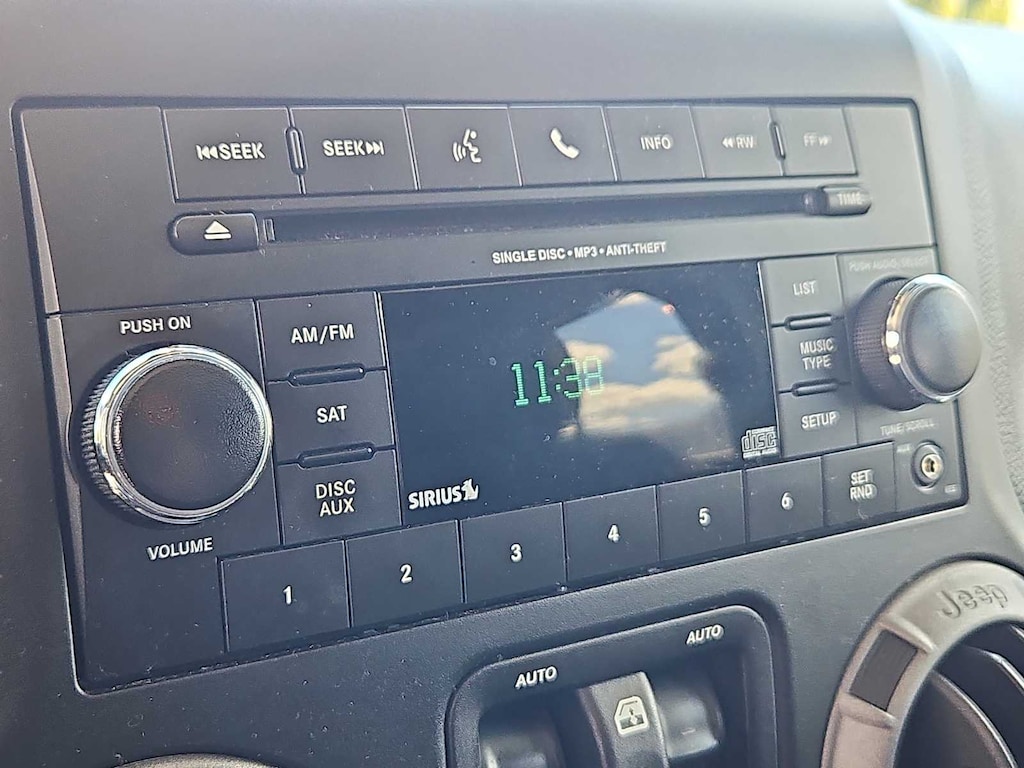 CD Player, Brake Actuated Limited Slip Differential. Steering Wheel Controls, Child Safety Locks, Rollover Protection System, Electronic Stability Control. Non-Smoker vehicle Jeep Sport with Rhino Clearcoat exterior and Black interior features a V6 Cylinder Engine with 285 HP at 6400 RPM*.