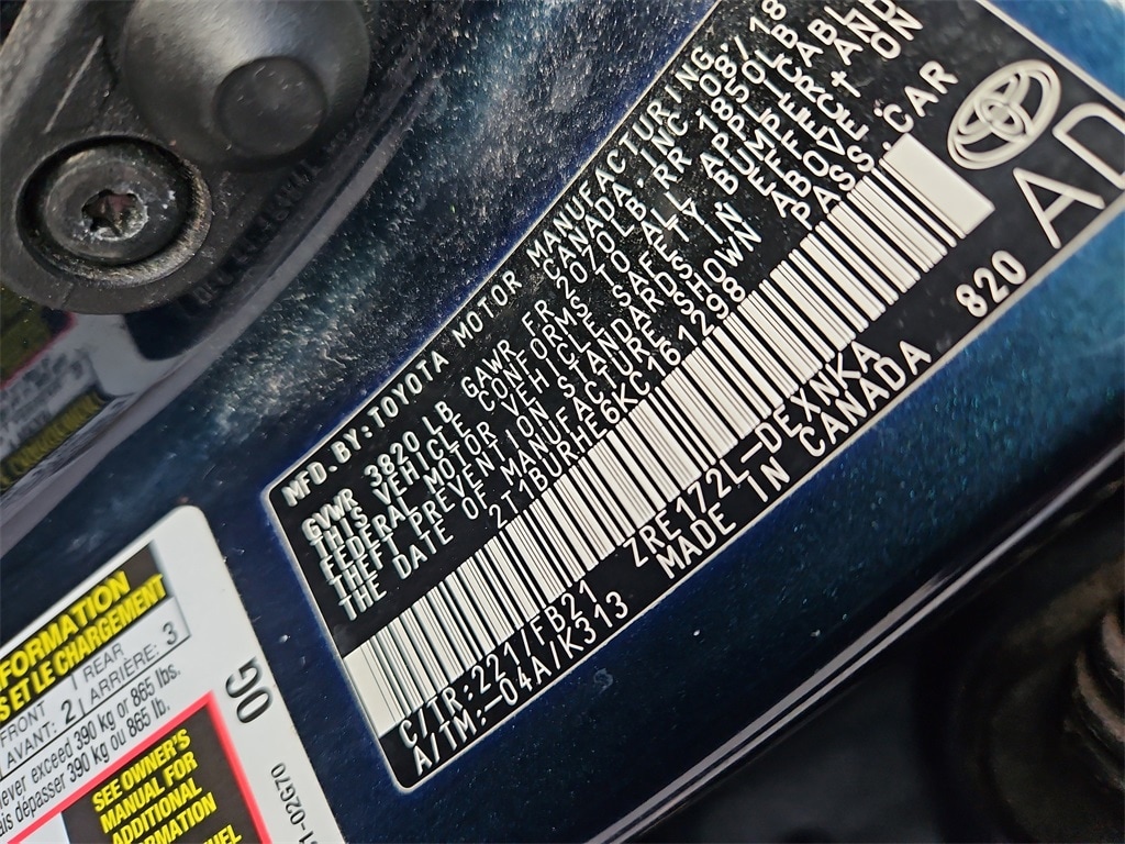 Galactic Aqua Mica 2019 Toyota Corolla LE FWD CVT 1.8L I4 DOHC 6 Speakers, ABS brakes, Air Conditioning, AM/FM radio, Automatic temperature control, Brake assist, Carpet Mat Package (TMS), Electronic Stability Control, Exterior Parking Camera Rear, Fabric Seat Trim, Front Center Armrest w/Storage, Front wheel independent suspension, Heated door mirrors, Power steering, Power windows, Radio data system, Radio: Entune Audio Plus w/Connected Navigation, Rear anti-roll bar, Speed-sensing steering, Split folding rear seat, Steering wheel mounted audio controls, Traction control, Variably intermittent wipers, Wheels: 16" x 6.5" Wide Vent Steel.