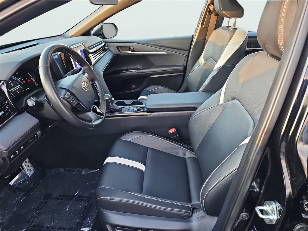 CARFAX One-Owner. Midnight Black 2025 Toyota Camry SE FWD eCVT 2.5L 4-Cylinder 16V DOHC 2.5L 4-Cylinder 16V DOHC, Black Artificial Leather.